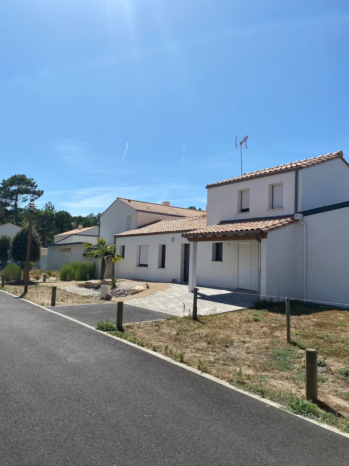 Nous sommes au numéro 10 il y a un emplacement de voiture devant la villa et d’autres places de stationnement dans le lotissement